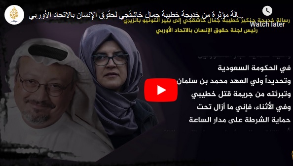 واختتمت خديجة قائلة: “في النهاية فإن التاريخ يعلمنا أن محاولة نيل رضا أشخاص خطرين في مراكز الحكم قد تؤدي إلى عواقب وخيمة. السادة أعضاء البرلمان الأوروبي الموقرون، إن تسليط الضوء على ما حدث في داخل القنصلية السعودية في إسطنبول، عصر ذلك اليوم المصيري، ومحاسبة قتلة جمال ومن يرعاهم، لن يعيد إليّ خطيبي، غير أنه سوف يضمن ألا تذهب حياته سدى إذ أن جمال كان طوال حياته مدافعا عن الديمقراطية وحقوق الإنسان والحرية، واليوم فإني أناشدكم أن تخدموا العدالة بأن تطالبوا المملكة العربية السعودية بأجوبة فيما يتعلق بالجريمة مع سبق الإصرار والترصد، التي ذهب ضحيتها جمال خاشقجي إني أطالب المملكة العربية السعودية بأن تبادر فورا بمد المجتمع الدولي والعالم بالحقيقة كاملة ولا شيء غير الحقيقة، وأخيرا أود أن أذكر بأن أوروبا تقع على عاتقها مسئولية بأن ترفع صوتها عاليا وتتخذ خطوات ملموسة ضد الظلم من أجل حماية مبادئنا المشتركة ونمط حياتنا من أعداء الحرية.. وتقبلوا أفضل آيات التقدير والاحترام”.