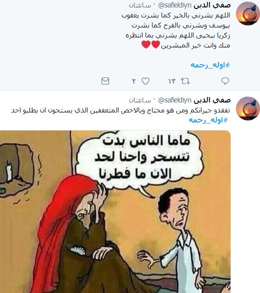 وكتبت سارة علي :”اللهم احفظنا من الغفلات ونجنا من الدركات وكفر عنا الذنوب والسيئات وتقبل صيامنا يارب العالمين”، فيما كتب صفي الدين :”اللهم بشرني بالخير كما بشرت يعقوب بيوسف وبشرني بالفرح كما بشرت زكريا بيحيى اللهم بشرني بما انتظره منك وانت خير المبشرين”، مضيفا :”تفقدو جيرانكم ومن هو محتاج وبالاخص المتعففين الذي يستحون ان يطلبو احد”