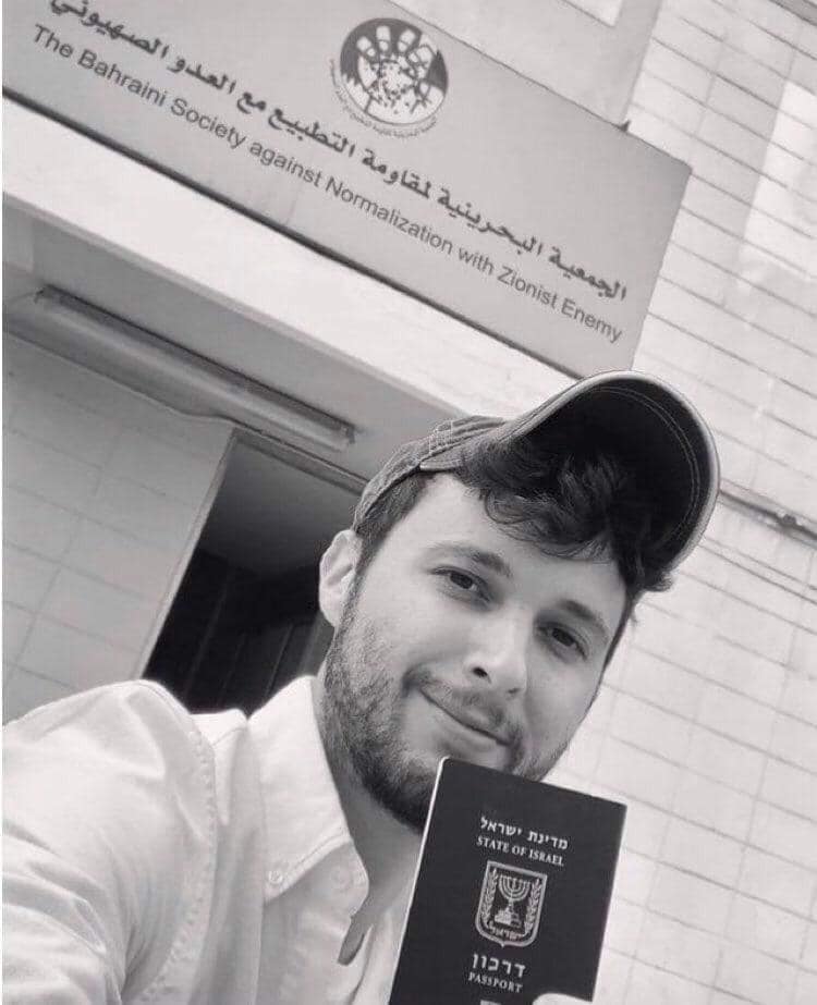 كما نشر صحفي إسرائيلي آخر صورة له وهو يحمل جواز سفره الإسرائيلي أمام الجمعية البحرينية لمقاومة التطبيع مع العدوّ الصهيوني، بعد أن سمحت له السلطات البحرينية بدخول أراضيها لتغطية ورشة المنامة.