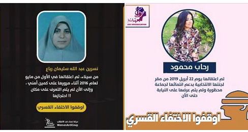 كما استنكرت حركة نساء ضد الانقلاب استمرار الجريمة ذاتها للحرة “نسرين عبد الله سليمان رباع ” من أبناء العريش في سيناء، فمنذ أن تم اعتقالها في الأول من مايو لعام 2016 أثناء مرورها على كمين أمني، وإلى الآن لم يتم التعرف على مكان احتجازها !!