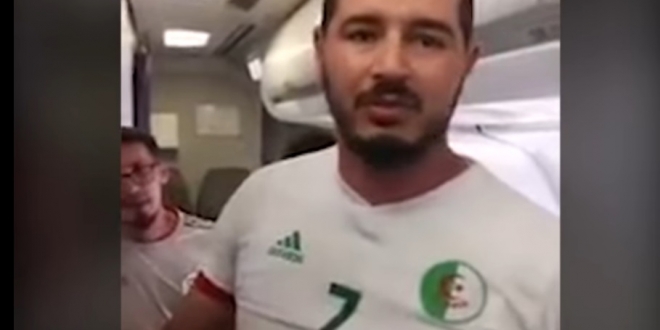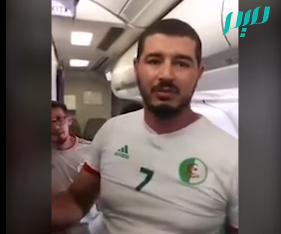 ويظهر في مقطع الفيديو لعدد من المشجعين الجزائريين على متن طائرة وهم يتحدثون عن تفاصيل ما حصل لهم حتى ترحيلهم.