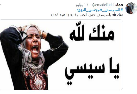 وكتبت علياء عمر: "السيسي خان القسم وفرط في دم المصريين ، وهدم سيناء و حاصر اهل غزة وساعد في موت اهل سوريا وكان داعم لحفتر في ليبيا.. السيسي لعنه علي الوطن العربي"، فيما كتبت أفنان :"السيسى باع مصر وارضها نيلها وغازها وقتل شبايها دمر اقتصادها..العميل الصهيونى يكشف اخر اوراقه بيبيع الجنسيه المصريه"