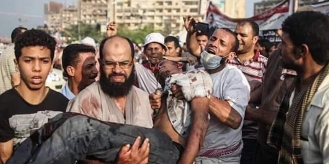 عشرات الشهادات التي وثقت مجزرة "المنصة"، جريمة الحرب التي ارتكبها السيسي ووزير داخليته الذي حاول قتله عدة مرات، ثم أزاحه مع أول فرصة.