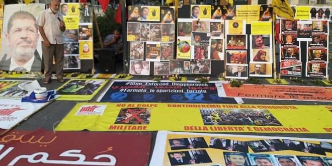 نظم عدد من أبناء الجالية المصرية في إيطاليا فعالية بالعاصمة روما، بالتزامن مع الذكرى السادسة لمجزرة رابعة والنهضة، تضمنت العديد من الأنشطة.