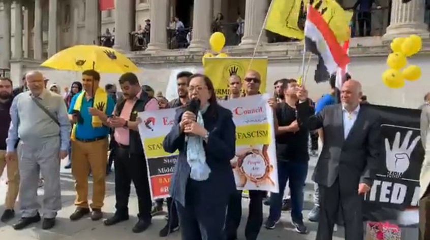 نظم المجلس الثوري المصري في لندن، اليوم، وقفة احتجاجية في ميدان "ترافلجر" إحياءً للذكرى السادسة لمذبحتي رابعة العدوية والنهضة، وللمطالبة برحيل العسكر وعودة المسار الديمقراطي والقصاص لدماء الشهداء.