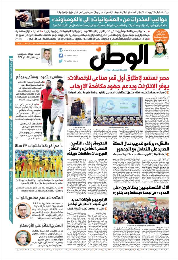 اهتمت صحف العسكر الصادرة السبت 2 نوفمبر 2019م، بالتسويق الواسع لاستعدادات النظام لإطلاق أول قمر صناعي للاتصالات وقالت إنه يوفر الإنترنت ويدعم جهود مكافحة الإرهاب بما يعني بشكل واضح أنه بهدف أمني بحت يستهدف مزيدا من الخنق ووأد الحريات التي تلاشت من الأساس في عهد نظام 30 يونيو الانقلابي. كما سوقت لمزاعم تراجع أسعار السلع الأساسية متجاهلة أمرين: الأول أن الأسعار الحالية ضعف الأسعار التي كانت قبل التعويم. والثاني، أن أسعار خدمات الحكومة لا تزال كما هي في الكهرباء والمياه والنقل والرسوم وغيرها. واعترف صحف تابعة للعسكر بالانتشار الواسع لتجارة المخدرات وأن القاهرة وحدها يوجد بها 700 بؤرة. وفي الملف الخارجي انحازت صحف العسكر لسفاح سوريا بشار الأسد وواصلت حرب التشويه والأكاذيب بحق تركيا.
