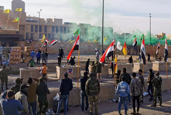 تشتعل الحب المكتومة فتمطر الميليشيا القاعدة الأمريكية في كركوك بوابل من الصواريخ فترد واشنطن بضربات موجعة على أهداف لحزب الله العراقي، يتوعد التنظيم بحرب مفتوحة وتحذر بغداد من تحويل أراضيها إلى ساحة لهذه الحرب فيأتي رد الكتائب أكثر تحديدا عبر حشد أنصاره لاقتحام السفارة الأمريكية.