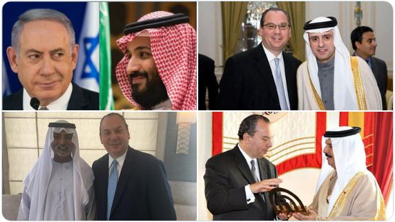 في عام 2006 عين ملك البحرين “حمد بن عيسى آل خليفة” اليهودية البحرينية “هودا نونو” سفيرة للبحرين في الولايات المتحدة، وهناك عشر شركات إسرائيلية، على الأقل، تملك استثمارات في دبي جميعها مسجلة في قبرص، وشركة تسحام التابعة لمستوطنة (أبكيم) فازت بمناقصة باسم فرعها في بريطانيا لإقامة مزرعة جِمال، ومركزًا لحلب النوق وتصديره في دبي.