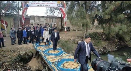 كانت هذه الصورة الملتقطة لموكب الوزيرة نقطة التحول لهذا المسار، حيث قرر المعنيون فرش سجاد لعبور الوزيرة على إحدى المعديات فوق أحد المصارف المائية بقرية الفرستق.