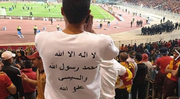 شهدت مباراة نادي الترجي التونسي والزمالك المصري المقامة علي استاد رادس بتونس ضمن دوري أبطال إفريقيا، هتاف جماهير الترجي ضد قائد الانقلاب العسكري عبد الفتاح السيسي، قائلين: “لا إله الا الله والسيسي عدو الله”.