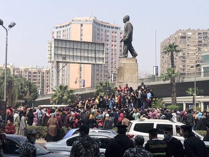 الصحفي والمغرد الشهير "سى سلامة عبد الحميد" سخر من الموقف فقال: "دي مش تجمعات لفحص #كورونا.. ولا حملة انتخابية، ولا مظاهرات.. الناس متجمعة أمام البنك في ميدان سفنكس عشان تقبض 500 جنيه إعانة بطالة. والشرطة واقفة تتفرج بعكس كل إجراءات الوقاية من المرض. يا فرحة قلب الفيروس بيكم".