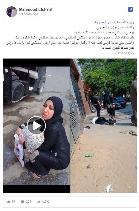 ومستشفى منشية البكري هي نفس المستشفى التي ظهرت أمامها سيدة ملقاة أمام البوابة طمعًا في أن تُفتح لها المستشفى، إلا أن أملها لم يتحقق، بل قامت إدارة المستشفى برش مياه على الأرض لطرد السيدة وأمها.
