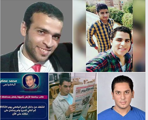 ومن الأقصر، جددت أسرة الشاب محمد عصام الدين عبد الرازق، مطلبها بالكشف عن مكان احتجازه المجهولة منذ اعتقاله من حرم جامعة الأزهر بأسيوط يوم الخميس 24 مايو 2018 واقتياده لجهة مجهولة حتى الآن