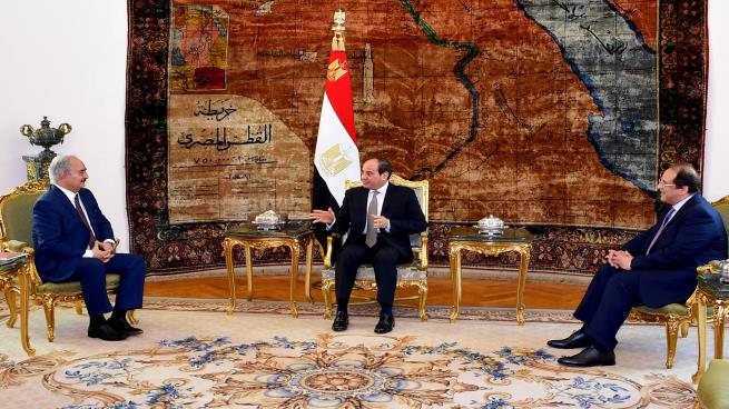 وكان السيسي استقبل صالح وحفتر بقصر الاتحادية في القاهرة، بحضور وزيري الدفاع والخارجية بحكومة الانقلاب، إضافة إلى رئيس المخابرات العامة. وأضاف أن "اللقاء يأتي باعتبار أن أمن ليبيا امتداد للأمن القومي المصري، بالاضافة إلى تأثير تداعيات الوضع الليبي الراهن على المحيط الإقليمي والدولي"، على حد تعبيره.