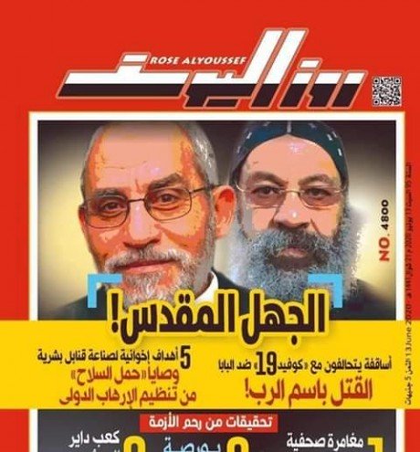 ونشرت روز اليوسف "مانشيت" عريضًا بعنوان: "أساقفة يتحالفون مع الكورونا.. ضد البابا والقتل باسم الرب"، وذلك أسفل صورة للأنبا رافائيل، أسقف عام كنائس وسط القاهرة، بجوار صورة لمرشد جماعة الإخوان، ما اعتبرته الكنيسة مساواة المجلة بين الطرفين في أمور تتعلق بما سمي "الخيانة".
