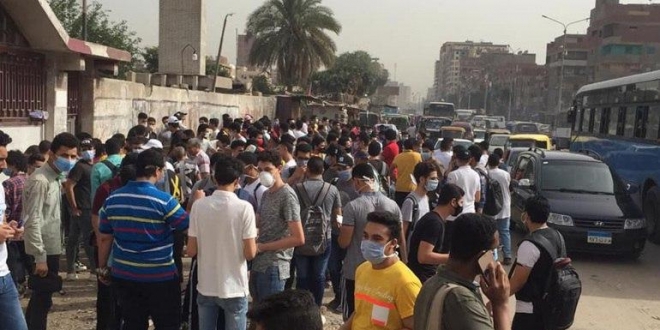 ورصد الطلاب- من خلال مقاطع فيديو وصور على مواقع التواصل الاجتماعي- الزحام الذي سبق أداء الامتحانات وسط أجواء من التوتر والتخوف من الإصابة بفيروس كورونا.