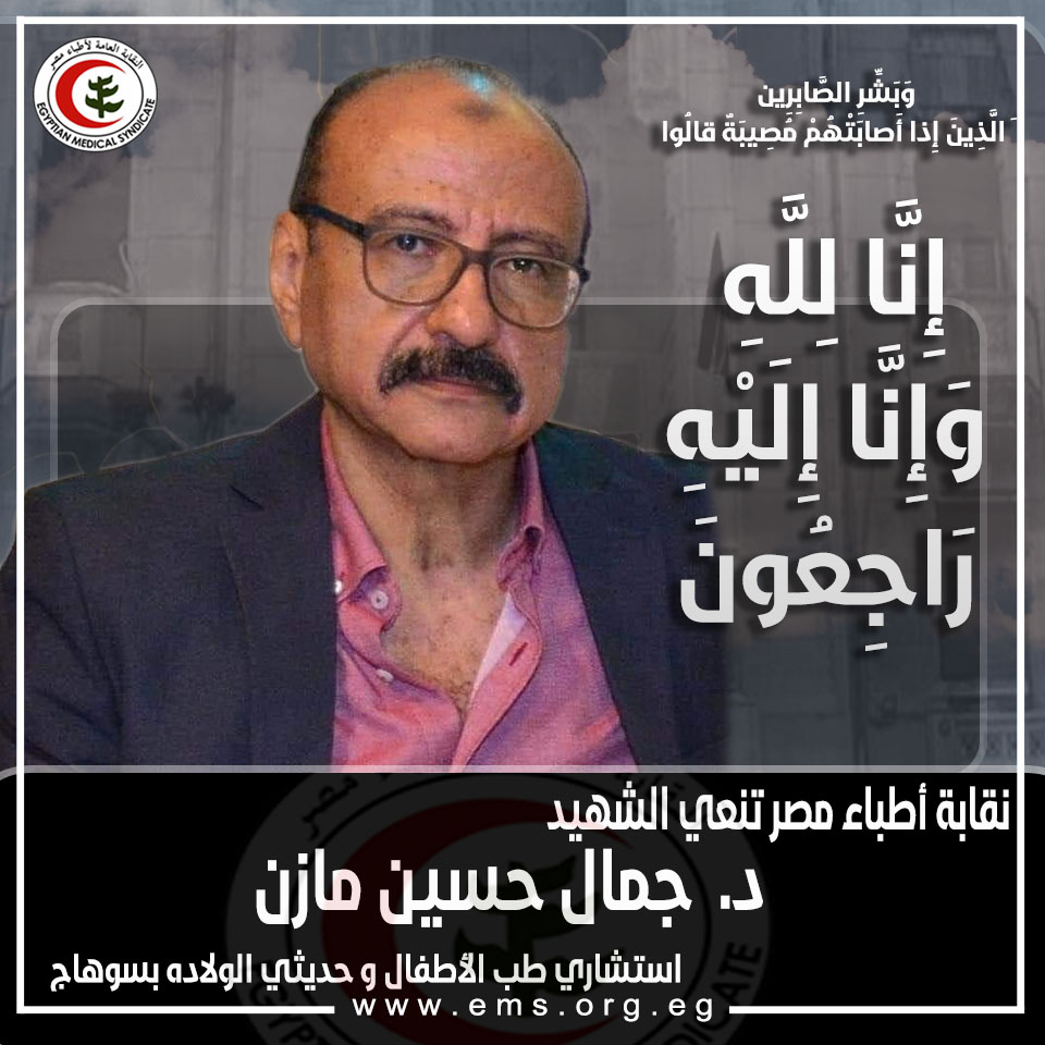 كما نعت الأطباء الشهيد الدكتور جمال حسين مازن استشاري طب الأطفال وحديثي الولادة بسوهاج، الذي توفي بمستشفى عزل معهد القلب والجهاز الهضمي بسوهاج بعد إصابته بڤيروس كوڤيد19.