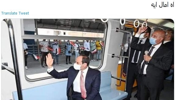 وعلق الحقوقي عمرو عبد الهادي قائلا: "في اليوم اللي أردوغان بيتفقد بناء مطار ثاني فوق البحر يتفقد السيسى إنشاء محطة مترو باسم الطرطور المحلل عطية منصور.. حشد معيزه بالملايين لافتتاح محطة مترو باسم الطرطور بكره نغيرها ونسميها محطة شهداء رابعة.. تركيا ليها رئيس ومصر ليها سيسي".