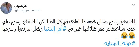 وكتب "مزجنجى" "إنك تدفع رسوم عشان خدمه دا العادي في كل الدنيا لكن إنك تدفع رسوم على خدمه مبتاخدهاش مش هتلاقيها غير في #أم_الدنيا وكمان بيرفعوا رسومها".