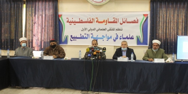 خرج مؤتمر "علماء في مواجهة التطبيع"، الذي نظمته فصائل المقاومة الفلسطينية، وكان جزء منه عبر الاتصال الهاتفي، وعقد في غزة على مدى اليومين الماضيين بنحو 14 توصية كان أبرزها "وجوب تحقيق الوحدة الإسلامية، ووقف الخلافات والصراعات على الساحات الإسلامية وتشكيل حلف عربي إسلامي لمواجهة الحلف الصهيوأمريكي في المنطقة". لتكون تصديقا لكتاب الله "وإِنَّ هَذِهِۦۤأُمَّتُكُمۡ أُمَّة وَاحِدَة وَأَنَا۠ رَبُّكُمۡ فَٱعۡبُدُونِ".