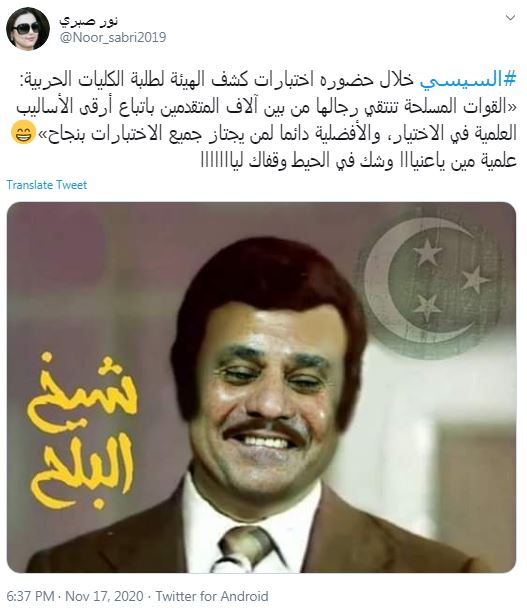 تصدر وسم "الشعب المصري" قائمة الأكثر تداولا على تويتر، تزامنًا مع اقتراب عيد ميلاد السيسي بعد ساعات ومواصلته الكذب والادعاءات المكشوفة من الأحداث الجارية وآخرها كلمة السيسي أثناء تفقد الكلية الحربية وحضور اختبارات كشف الهيئة لطلاب الكليات والمعاهد العسكرية، مدعيًا خلافا للواقع أن "القوات المسلحة تنتقى رجالها من كل فئات الشعب المصري العظيم" في حين يدرك أغلب الشعب أنها بالواسطة والمحسوبيات والرشاوى.