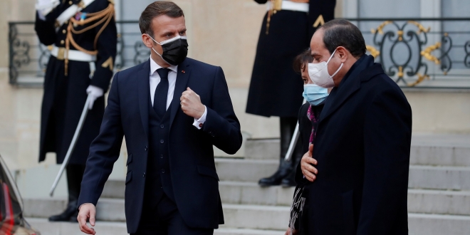 وفي وقت سابق من هذا الشهر، طرحت فرنسا سجادة حمراء للسيسي وكرمته بوسام الدولة الأعلى، "جوقة الشرف". ولم يكن للقمع الوحشي الذي يمارسه السيسي ضد المعارضة السياسية والإسلاميين والليبراليين تأثير يذكر على قرار فرنسا. ويقول ناشطون إن 60 ألف سجين سياسي يقبعون داخل سجون السيسي، والصحافة تُكمم بانتظام، وناشطو المجتمع المدني يشعرون بالرعب.