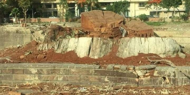 حزن كبير يسيطر على رواد مواقع التواصل الاجتماعى؛ بعدما أقدم نظام الانقلاب العسكري على جريمة جديدة باقتلاع عشرات الأشجار المعمرة بدعوى تطوير "كورنيش العجوزة" بمحافظة الجيزة. وبحسب نشطاء فإن من بين هذه الأشجار المعمرة شجرة اختصها الأديب الراحل نجيب محفوظ في روايته "ثرثرة فوق النيل"، التي تحولت إلى فيلم سينمائي فيما بعد.
