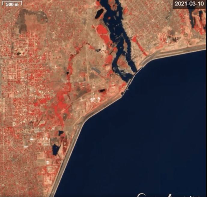 وتساءل: "هل فتحت إثيوبيا البرابخ الأربعة السفلية"؟ وأرفق فيديو يوضح تطور بحيرة سد الرصيورص في الفترة بين 13 فبراير حتى 10 مارس؛ حيث تظهر مياه بحيرة تخزين سد الرصيورص صافية بلا أي طمي. فيما الصورة الثانية من جوجل إيرث هي الأحدث وربما تم تصويرها بعد يوم 10 مارس وتوضح حجم الطمي الكبير بالبحيرة.