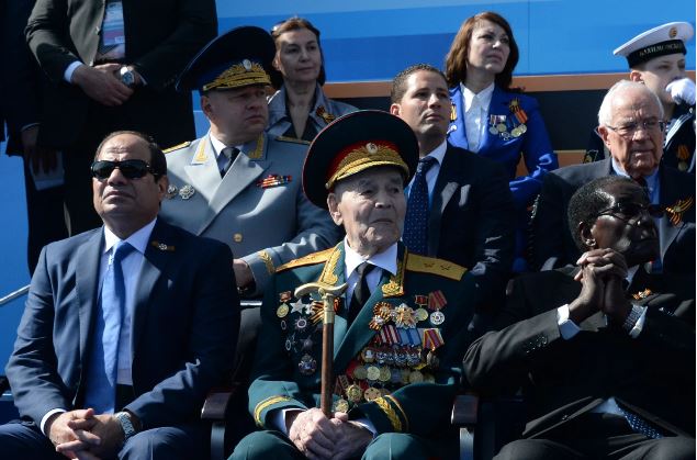 الصورة التي اختارها كبلان هي لقائد الانقلاب عبد الفتاح السيسي وهو يشهد عرضا عسكري في موسكو إلى جوار عسكريين وحكاما ديكتاتوريين من إفريقيا في 9 مايو 2015.