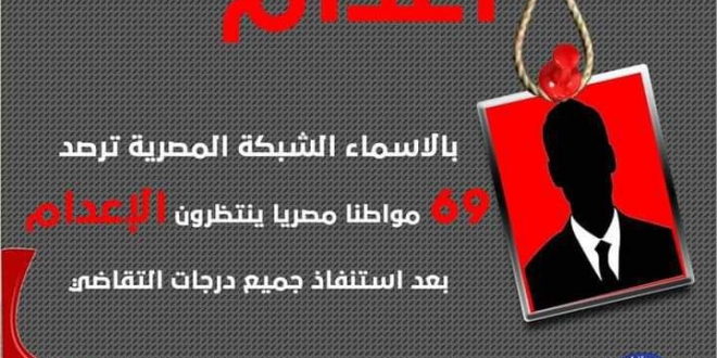 وأصدرت الشبكة تقريرا "رصدت فيه استنفاذ 69 مواطنا مصريا جميع درجات و إجراءات التقاضي، لتصبح أحكام الإعدام الصادرة بحقهم واجبة التنفيذ".