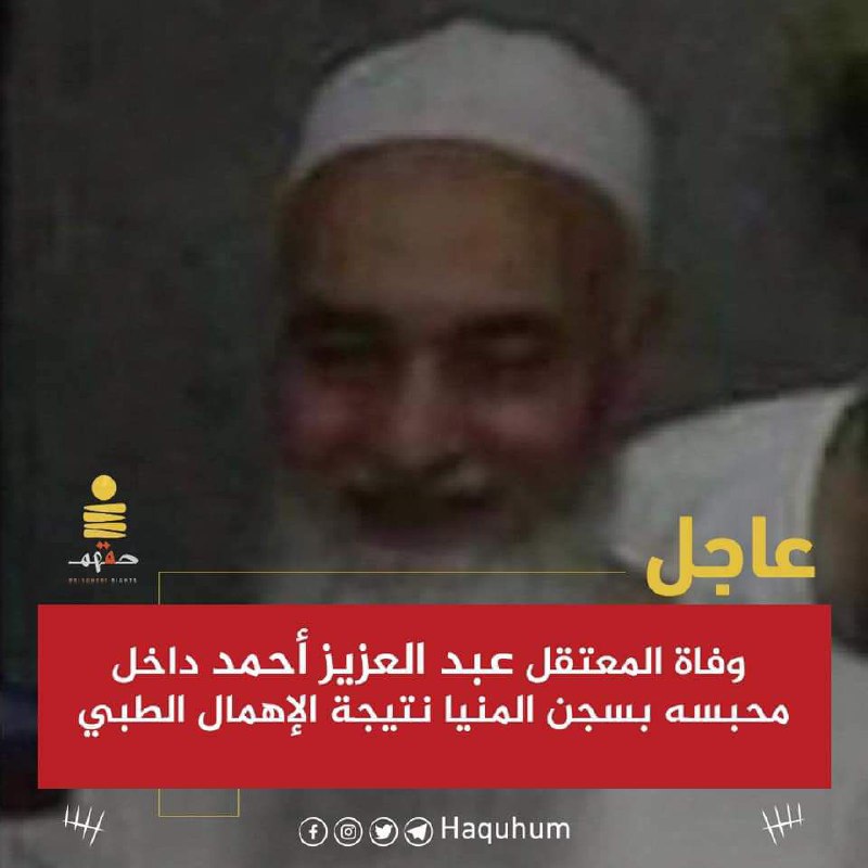 استشهد المعتقل عبد العزيز أحمد داخل محبسه بسجن المنيا نتيجة الإهمال الطبي المتعمد داخل السجون التي تفتقر لأدنى معايير سلامة وصحة الإنسان استمرارا لمسلسل الجرائم التي لا تسقط بالتقادم.