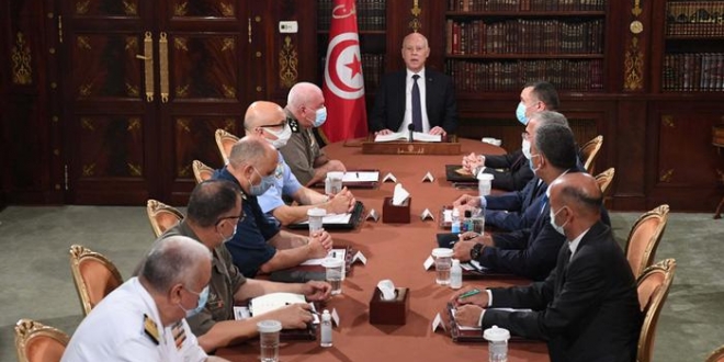 ولفت التقرير إلى أن "سعيد تعهد بحماية الديمقراطية في تونس، إلا أنه استخدم ذريعة مثيرة للجدل للإطاحة بالسلطة، قائلا إن المادة 80 من الدستور التونسي تسمح له بالحكم بقرارات تنفيذية، ولكن هذا لن يحدث إلا إذا واجهت البلاد تهديدا وشيكا، ومن المفترض أن يتم التشاور مع رئيس الوزراء ورئيس البرلمان، فقد جرّد سعيد النواب من الحصانة واستولى على سلطات المُدعي العام، تم اقتحام مكاتب قناة الجزيرة، كما أوضح الرئيس منذ انتخابه أنه ليس من أنصار النظام السياسى للحزب".