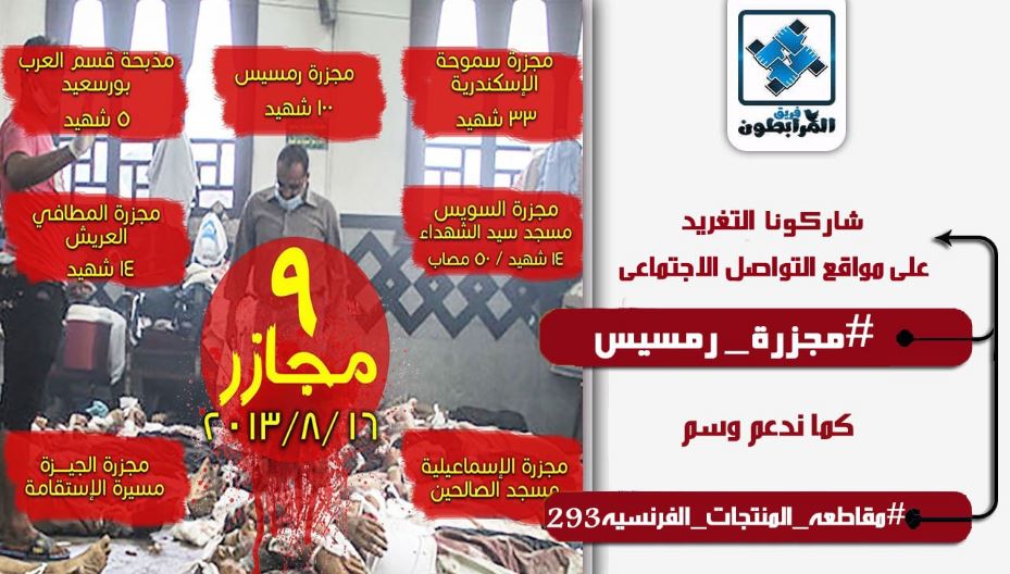 فريق "المرابطون" نشر تذكيرا بالتغريد عبر نفس الهاشتاج مع الإشارة إلى أن "مذبحة رمسيس تزامن معها 9 مذابح باليوم نفسه منها؛ في سموحة بالإسكندرية والعرب ببورسعيد والأربعين بالسويس والمنيا".