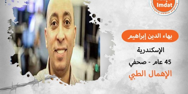 وثقت منظمة "نجدة لحقوق الإنسان" ما يحدث من إهمال طبي للمعتقل الصحفي بهاء الدين إبراهيم نعمة الله، داخل محبسه بسجن استقبال طره، حيث تمنع إدارة السجن دخول الأدوية بجميع أنواعها له مع عدم توفير ما يحتاجه منها.