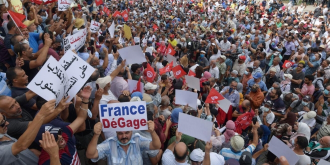 خرج مئات الأشخاص إلى الشوارع وسط العاصمة التونسية السبت، احتجاجا على قرارات الرئيس قيس سعيد غير الدستورية بحجز السلطة في شهر يوليو الماضي، بحسب ما أفاد موقع "ميدل إيست آي".