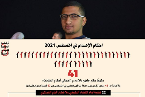 رصدت المبادرة المصرية للحقوق الشخصية صدور أحكام بالإعدام لـ41 مواطنا خلال شهر أغسطس المنقضي في 22 قضية تم نظرها أمام محكمة الجنايات.