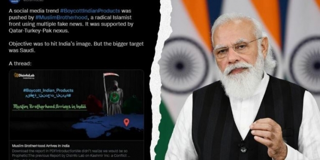 واستند التقرير إلى تقرير نشره مركز " Disinfo Lab" معتبرا أن أجندة الإخوان المسلمين مناهضة للهند، وأن جماعة الإخوان المسلمين هي من أطلقت الوسوم على وسائل التواصل الاجتماعي ومنها "تويتر" وأنها تدفع باتجاه "إيذاء المصالح الاقتصادية والإستراتيجية الهندية".
