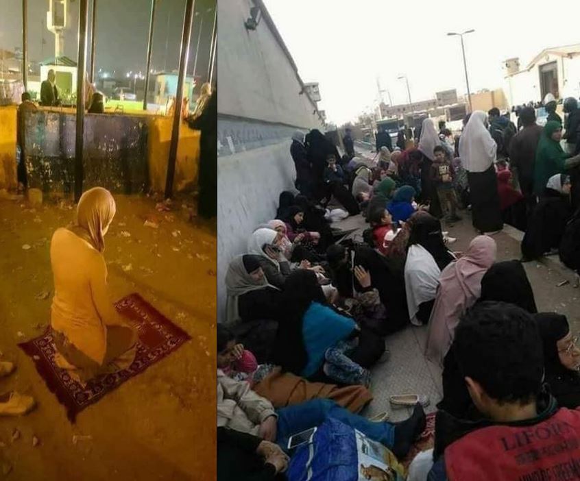 وعبر حسابه على فيسبوك  (Hossam Elaraby) استعرض صورة زوجة معتقل تصلي الفجر في الشارع أمام أبواب السجن لتحجز زيارة و ترى زوجها حبيبها.