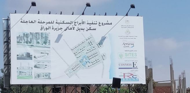 هناك مشروع إسكان على الجزيرة داخله حوالي عشرة مباني، سبعة منها انتهى من بنائها، أحدها انتهت تشطيباته النهائية، كل منها مكون من 11 طابقا، فيما يتبقى حوالي أربعة مبان تحت الإنشاء، بحسب اثنين من الأهالي، ويضيف أحدهما أن هذا المشروع سيكون ذريعة لإخلاء الجزيرة، موضحا أن هذا المشروع يتوسع على الجزيرة، بيزرع عماير عشان يأخد الأرض اللي حواليها، يقول المصدر.