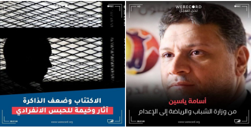 قالت منظمة "نحن نسجل" الحقوقية إن "سجن العقرب 1 يقبع به نحو 200 معتقل في الحبس الانفرادي منذ عام 2013، بينما يقبع مئات آخرون في حبس انفرادي جماعي، ويُمنع عن الجميع التريض والزيارة منذ عدة سنوات بشكل كامل".