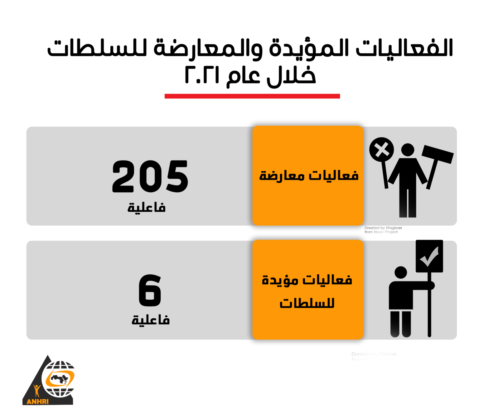 وكشف التقرير الثامن لمبادرة محامين من أجل الديمقراطية لرصد المسار الديمقراطي في مصر خلال عام 2021 عدم توقف الاحتجاجات خلال العام، حيث رصد 211 فعالية احتجاجية للقوى السياسية المختلفة، جاءت الاحتجاجات الاجتماعية والعمالية في المرتبة الأولى بعدد 151 فعالية، و30 فاعلية لأنصار جماعة الإخوان المسلمين و19 فعالية للطلاب ، إلى جانب تنظيم القوى المدنية لعدد 5 فعاليات، وتنظيم 6 فعاليات مؤيدة للسلطة وقراراتها.
