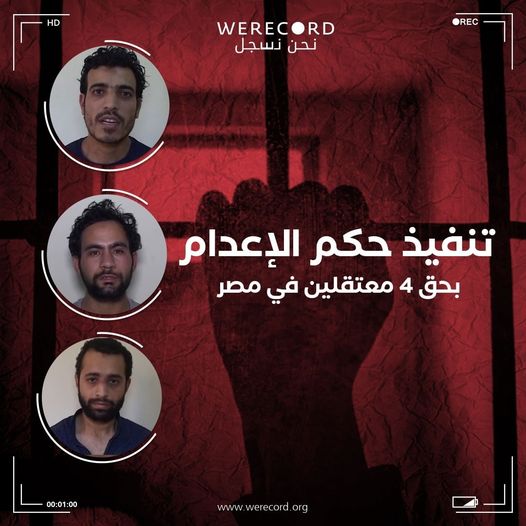 وثق فريق منظمة "نحن نسجل" الحقوقية تنفيذ مصلحة السجون أول أمس الثلاثاء الموافق 8 مارس 2022 حكم الإعدام بحق 4 مواطنين في القضية رقم 513 لسنة 2016، والمعروفة إعلاميا بما يسمى "خلية ميكروباص حلوان" وهم: