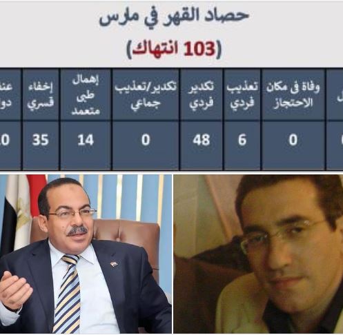 وشملت الانتهاكات 14 حالة إهمال طبي و6 من حالات التعذيب الفردي و48 حالة تكدير فردي و35 حالة إخفاء قسري و10 حالات عنف للدولة.