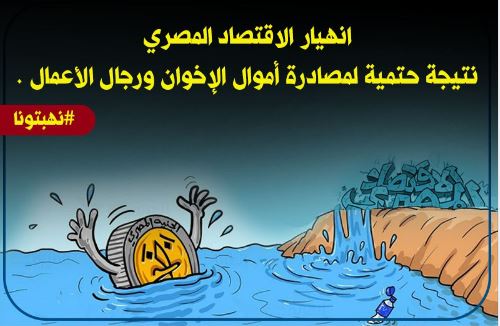 ولفت حساب "بوابة الحرية والعدالة" على تويتر إلى أن انهيار الاقتصاد المصري نتيجة حتمية لمصادرة أموال الإخوان ورجال الأعمال.