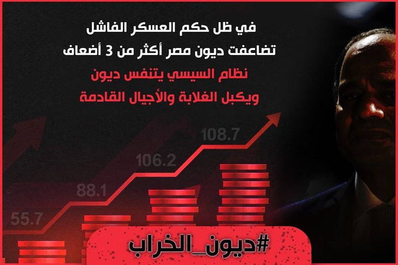 تفاعل ناشطون ومنصات على مواقع التواصل الاجتماعي "فيسبوك" و"تويتر" مع وسم #ديون_الخراب وذلك بعد استفحال الدين العام والديون الخارجية لمصر التي وصلت حتى نهاية 2021 إلى 145.5 مليار دولار بحسب الأرقام الرسمية لحكومة السيسي، أما المصيبة الأكبر فكانت اتجاه السيسي وعاصبة العسكر إلى إنفاق هذه الأموال في غير أوجهها الصحيحة.