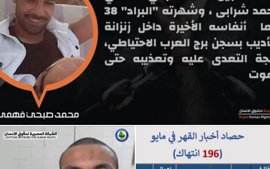 قالت منظمة نجدة لحقوق الإنسان إن "السجين محمد صبحي فهمي محمد شرابي وشهرته "البراد" 38 عاما لفظ أنفاسه الأخيرة داخل زنزانة التأديب بسجن برج العرب الاحتياطي، نتيجة التعدي عليه وتعذيبه حتى الموت، ليتم نقله بعدها جثة هامدة إلى مشرحة كوم الدكة بالإسكندرية، دون إعلام أسرته بوفاته إلا بعد 4 أيام من الوفاة في 31 مايو 2022 بالمخالفة للائحة تنظيم السجون ومواد الدستور و القانون ".