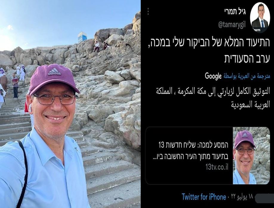 ونشر المراسل الصهيوني للقناة ال13 الصهيونية تامار جيا مقطع فيديو وتقريرا مصورا يوثق رحلته داخل الحرم المكي، ويظهر وهو يتجول بحرية في المشاعر المقدسة مع الحجيج، وعلى صعيد عرفات ويتكلم فيها بالعبرية بلا قيود، قائلا إن “الحكومة السعودية منحته تصاريح أمنية، وسهلت له المرور في كل الأماكن التي أراد زيارتها”.
