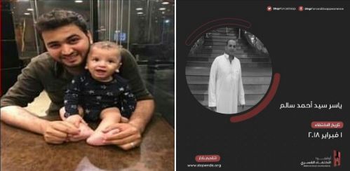 أيضا طالب الحملة بالكشف عن مكان احتجاز المواطن " ياسر سيد أحمد سالم " البالغ من العمر 43 عامل ويعمل بشركة كهرباء محافظة شمال سناء مدينة نخل والمختفى قسريا منذ 1 فبراير 2018