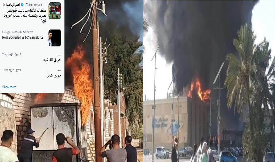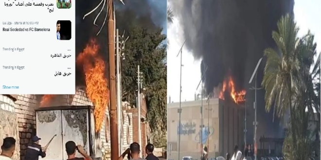 تداول ناشطون هاشتاج وكلمة (حريق القاهرة) و(حريق هائل) على وسائل التواصل الاجتماي مستدعين ذكرى حريق القاهرة الذي نفذه العسكر في 1952، بعد تكرار الحرائق بشكل إلهائي استخباراتي مع تماسه بالكنائس بعد حريق 14 أغسطس بكنيسة المنيرة بإمبابة ثم حريق إلى جوار دير أبو حنس بملوي في المنيا (الصعيد) واليوم الأحد بحريق محدود في بعض المخلفات الورقية بجوار سور دير درنكة بأسيوط.