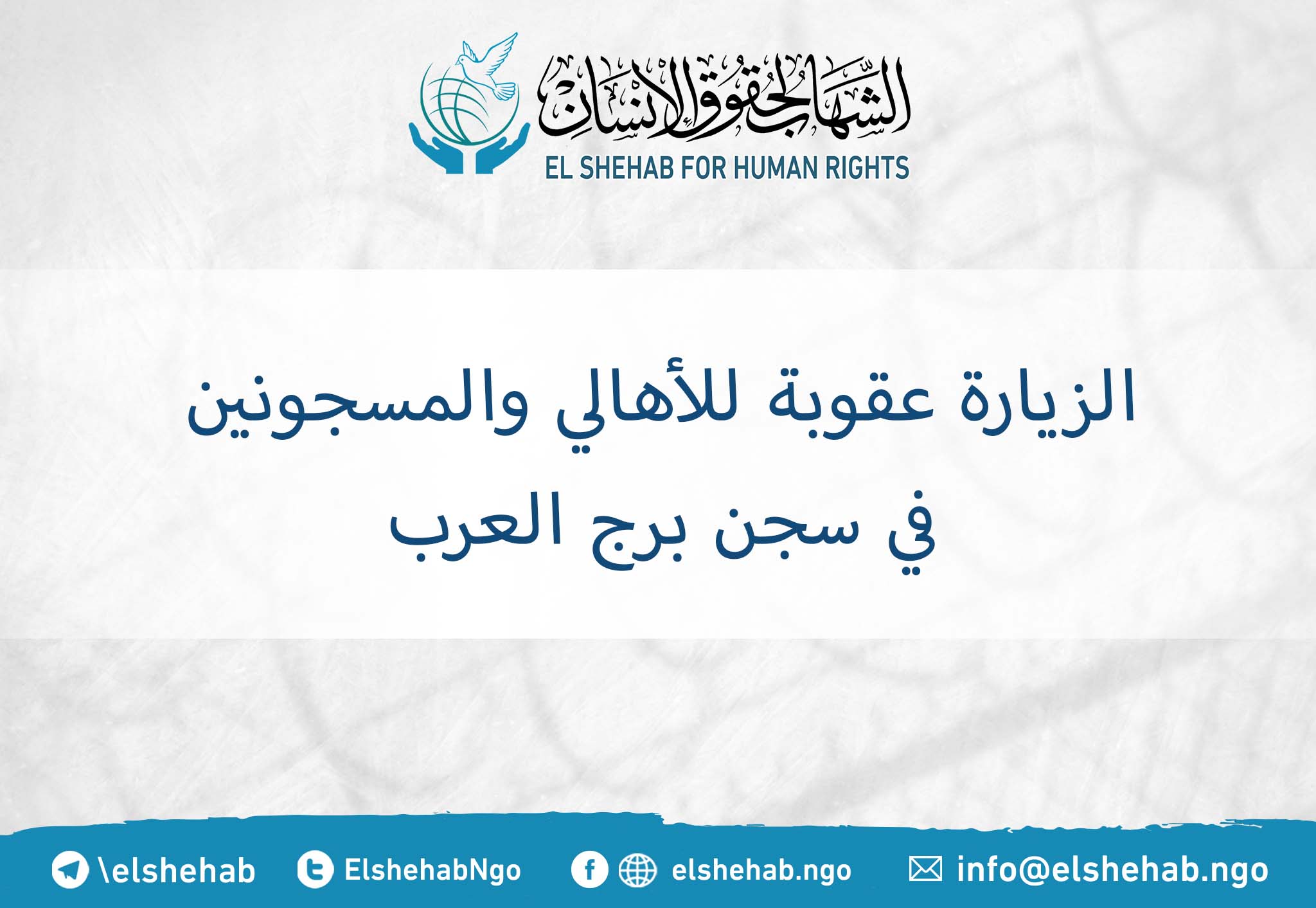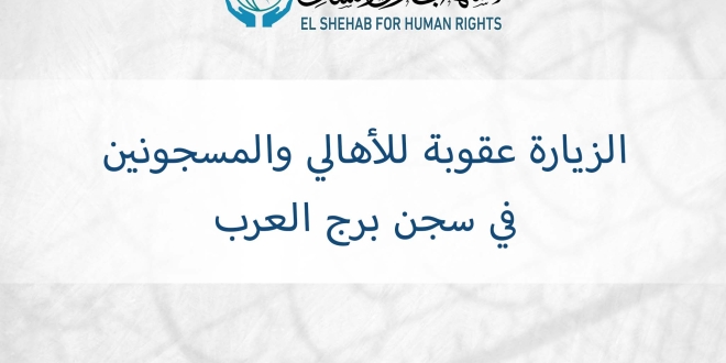 دان "مركز الشهاب لحقوق الإنسان" الانتهاكات التي يتعرض لها المعتقلون بسجن العرب خلال الزيارة والتي أصبحت عقوبة للأهالي والمحتجزين ، بما يتنافى مع أدنى معايير الحقوق وحمل إدارة السجن المسئولية وطالب بإنهاء هذه الانتهاكات فورا والإفراج عن المعتقلين.